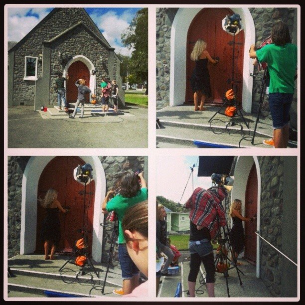 The scene was set at a beautiful stone church in Stokes Valley (St. Phillips) and culminated with me standing under a shower of freezing cold water at 11.30pm on a balmy Saturday night. Sounds crazy but it worked and the finished product is going to be outstanding. We are looking at a release date in April after this I will have it up on my website and on YouTube, iTunes etc for you all to view. So excited!!