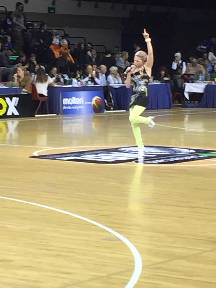 Sport has been playing a big part in our capital city recently and I was invited to perform the National anthem and half time entertainment for the NBL Basketball finals. This was a great honour and it was a very exciting night. After some debate with my manager Mr G, I settled on the songs that I would perform at half time, little did I know that I would be joined by the Wellington Saints mascot a dancing Gorilla. Photos can be found on my facebook page along with a few below, so the evening was a lot of fun with sport music and a great audience, I look forward too the next one .